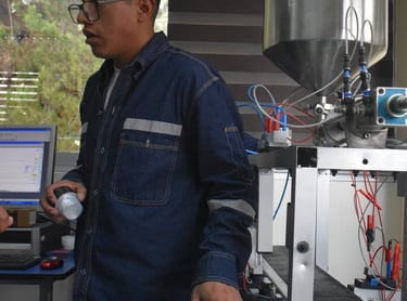 Finalmente, los estudiantes aplican sus conocimientos en un sistema compuesto por un dosificador de líquidos, una cinta transportadora y un variador de frecuencia, donde los mismos principios neumáticos se controlan mediante un PLC y una interfaz HMI. Este montaje representa la evolución hacia sistemas complejos, dejando atrás la lógica cableada y adentrándose en la programación industrial. Con ello, la materia promueve un enfoque moderno, eficiente y realista de la automatización, alineado con las tecnologías utilizadas en las industrias actuales.