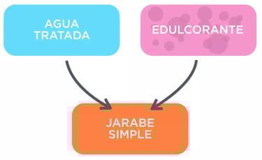 El agua tratada es mezclada con edulcorantes nutritivos como es el azúcar en medidas exactas formando el jarabe simple, el que es Sitrado a baja presión eliminando así cualquier impureza.