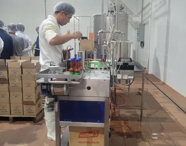 La maquinaria para etiquetado y embotellado juega un papel crucial en la eficiencia y calidad de la producción. Actualmente, la empresa utiliza equipos que permiten realizar estas tareas de manera manual o semiautomática, pero con la posibilidad de ser completamente automatizados en el futuro para mejorar aún más la velocidad y precisión del proceso.