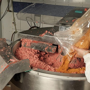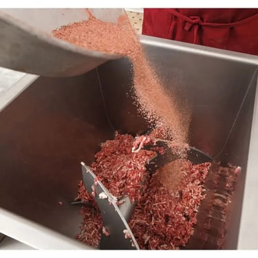Usamos una mezcla especial de especias y condimentos naturales para darle a nuestros productos ese sabor tradicional que tanto te gusta. Amasamos la mezcla con precisión, manteniendo la temperatura ideal para conservar su frescura. Después, formamos los embutidos con tripas naturales y los atamos a mano, siguiendo nuestras técnicas artesanales.